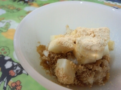 11m23d 離乳食後期 きな粉バナナのオートミール粥 見習い管理栄養士のできごと